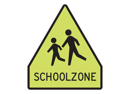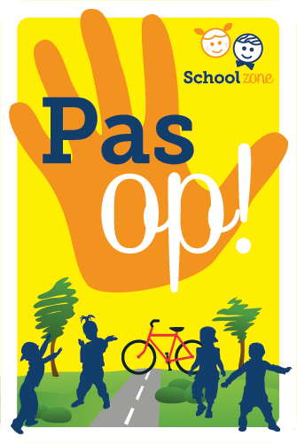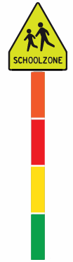 Schoolzone baken hoge paal met dubbelzijdig bord